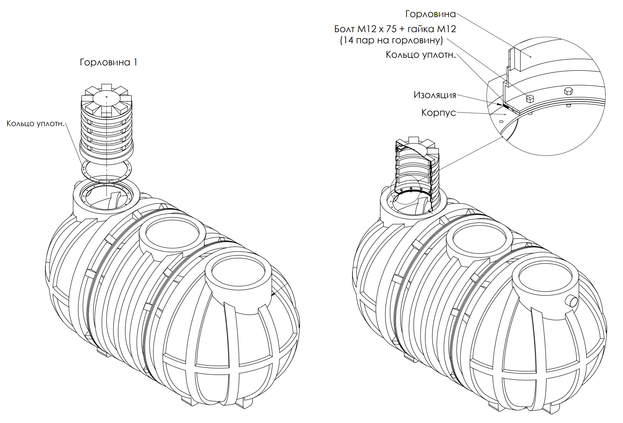 Корпус системы изготавливается методом ротационного формования из первичного линейного полиэтилена, что обеспечивает: