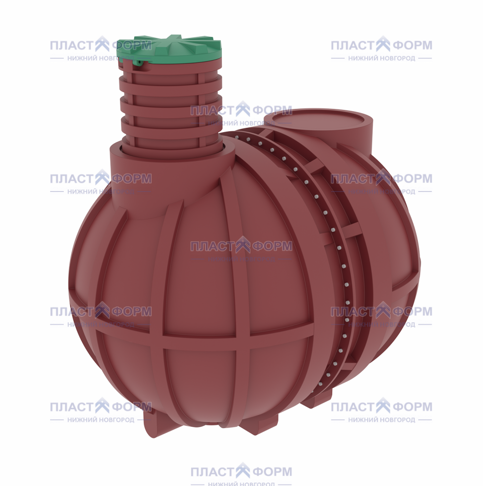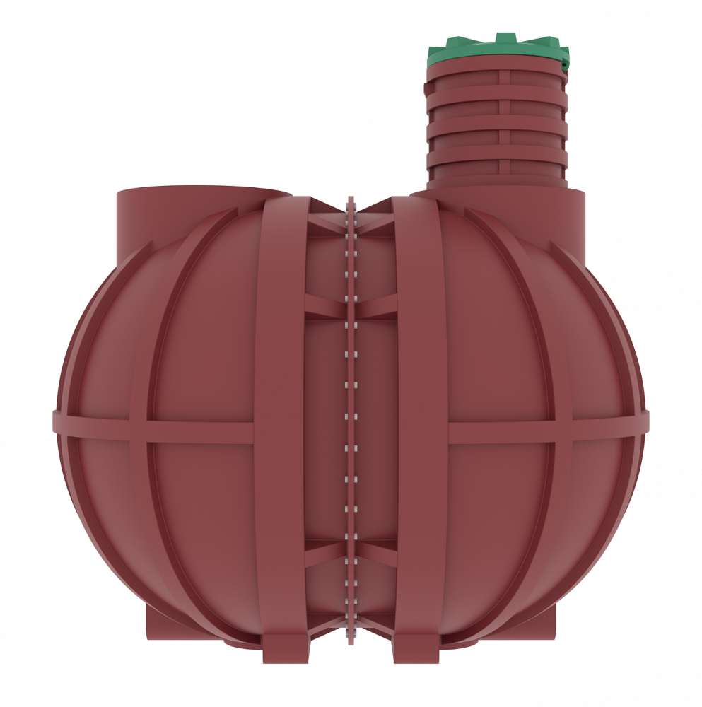Уникальная форма – правильный круг с полнокруглыми торцами – придаёт резервуару исключительную прочность и способность выдерживать высокие грунтовые нагрузки. Такая конструкция равномерно распределяет давление грунта и исключает деформации даже при глубоком заложении (до 3200 мм).