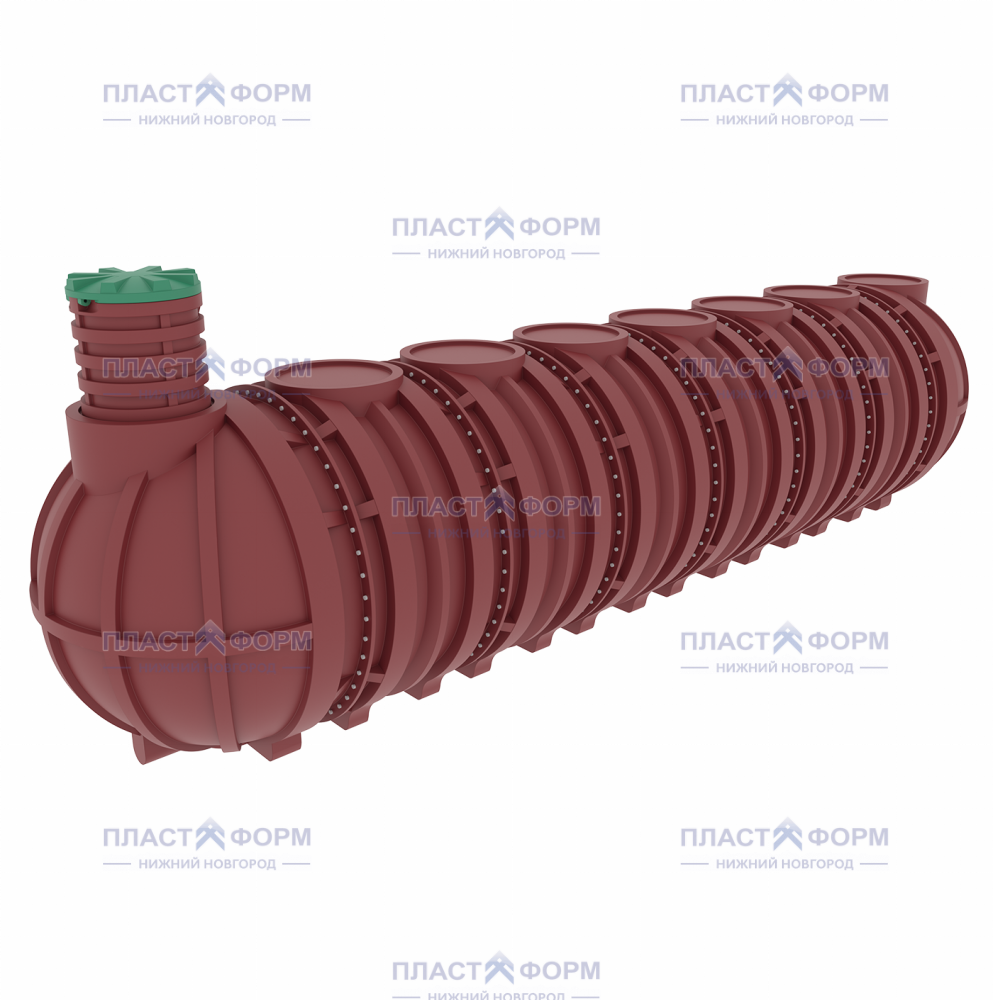 Уникальная форма – правильный круг с полнокруглыми торцами – придаёт резервуару исключительную прочность и способность выдерживать высокие грунтовые нагрузки. Такая конструкция равномерно распределяет давление грунта и исключает деформации даже при глубоком заложении (до 3200 мм).
